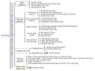 Digging through some of my papers over the weekend, I found an old chart I have, which gives a breakdown of the patterns found in the Shāng Hán Lún (伤寒论), with corresponding formulas, in a neat little flow chart format. I decided to translate it this morning as I think it\’s pretty cool. I\’ve started with the Tài Yáng section, and will finish up the rest in the next few days. Enjoy!