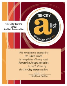 Thanks for voting! On October 30, 2012 By eranevenIn Translations & Writings (译著与文章) Just wanted to take a moment to thank my clients for voting me ‘Favourite Acupuncturist’ in the Tricities. Like Loading... Related