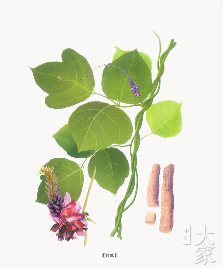 Zhāng Zhìcōng (1616-1674): “sweet and acrid, white when powdered, therefore enters Yangming; the skin is black and flower red, and so unites with Taiyang. Therefore, Gé Gēn is able to diffuse and outthrust the qi of yangming center earth, and unite the taiyang channel on the exterior.”